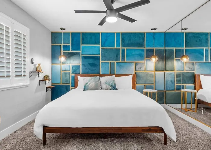 Die Villa in Las Vegas liegt in einer Entfernung von etwa 15 Fahrminuten vom Madame Tussauds und 15 Fahrminuten vom Flughafen McCarran International entfernt. Die Villa 4Bdrm 2 Bath Pool Close To Strip Conventions ist in einer 5 km Entfernung von den religiösen Stätten wie dem Treasure Island Las Vegas. Eingebettet in einer Entfernung von etwa 10 Fahrminuten vom Adventuredome im Circus Circus liegt diese Unterkunft in Las Vegas zudem in rund 25 Gehminuten Entfernung von kulturellen Sehenswürdigkeiten wie dem Zak Bagans' Haunted Museum.